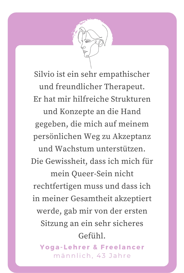 Als Psychologischer Psychotherapeut begleite ich Sie dabei sich innerhalb eines geschützten Raumes auf einen Lösungsprozess zu begeben. Gemeinsam erkunden wir die Zusammenhänge zwischen Ihren aktuellen Herausforderungen, Ihren Beziehungen und Ihrem sozialen Umfeld. Denn im Kontext unseres Lebens ergeben unsere Symptome durchaus Sinn. Wir schauen auf sich wiederholende Muster und Dynamiken und entwickeln neue Perspektiven, die Veränderung ermöglichen. Ziel meiner Arbeit ist es, dass Sie sich wieder handlungsfähiger und lebendiger erleben – und Ihr Leben im Einklang mit Ihren Bedürfnissen und Werten gestalten können.